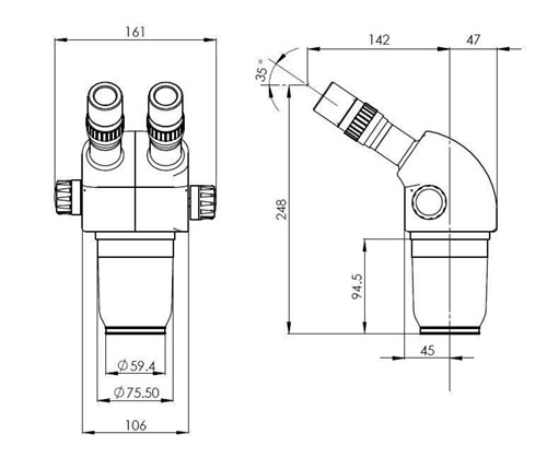 瞳距調(diào)節(jié)范圍(用10X 目鏡)
