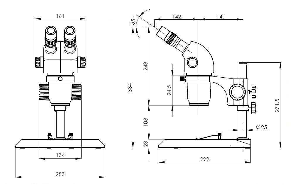 注 : 1. 使用0.37X物鏡時,需使用加長圓立柱,不能使用方立柱底座組。 2. 使用0.5X以下倍率的物鏡時,不能使用方立柱底座組。